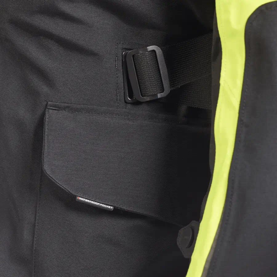 Een tailleverstelling zorgt voor een aangepaste pasvorm en voorkomt dat de jas opwaait tijdens het rijden.